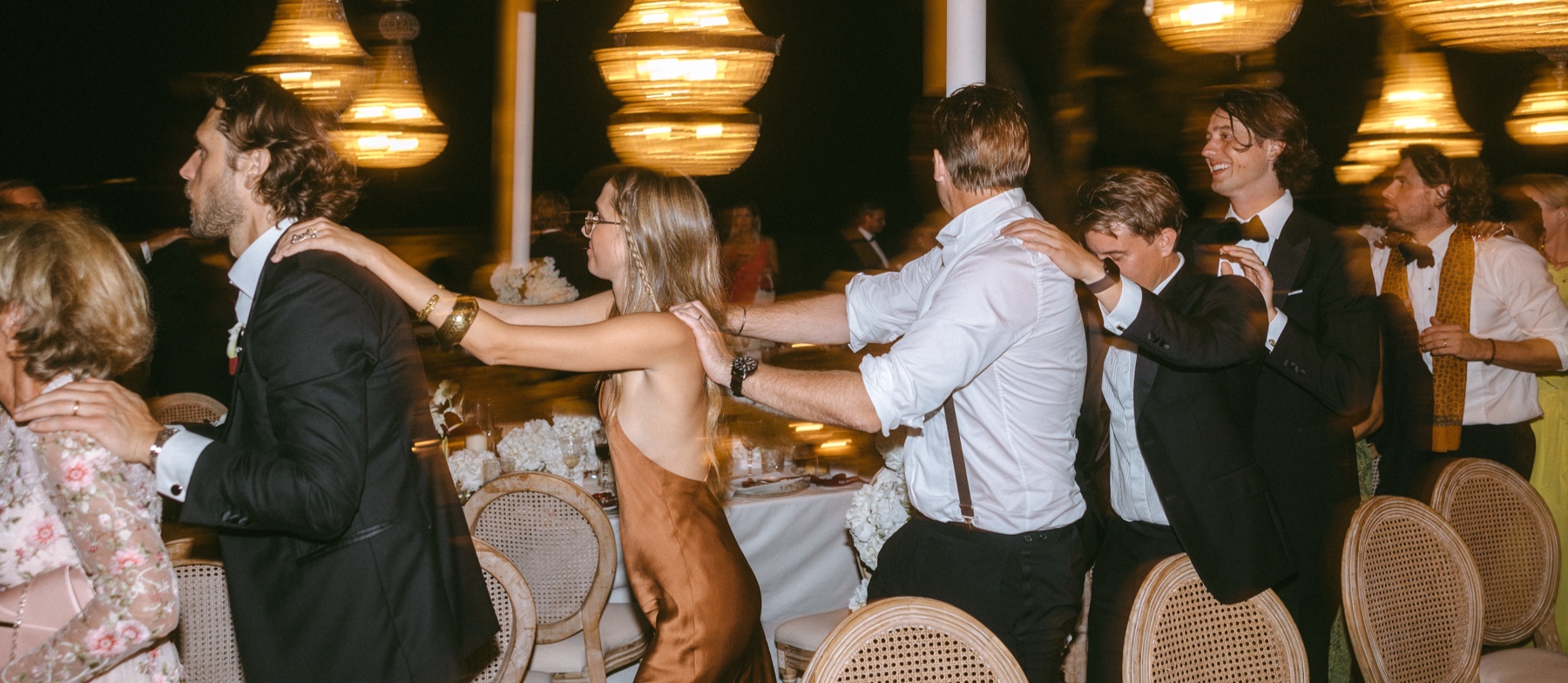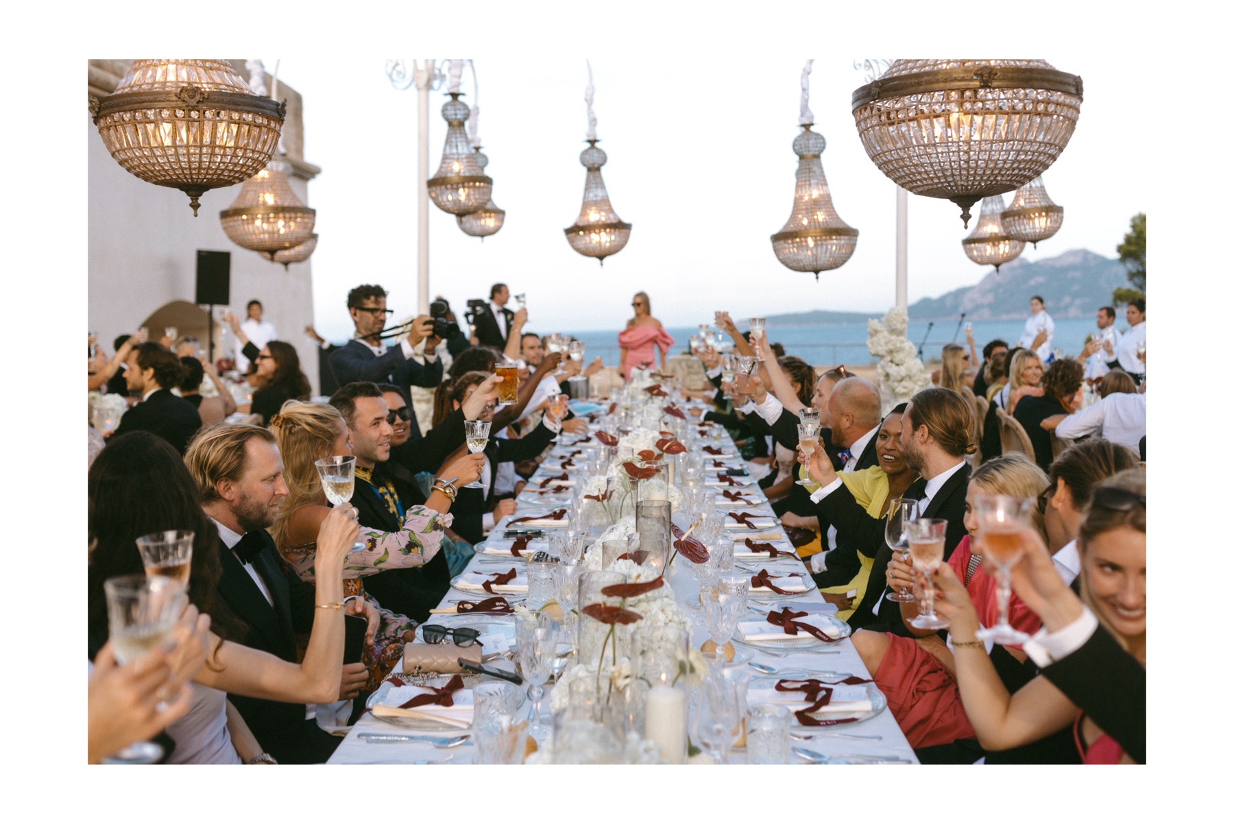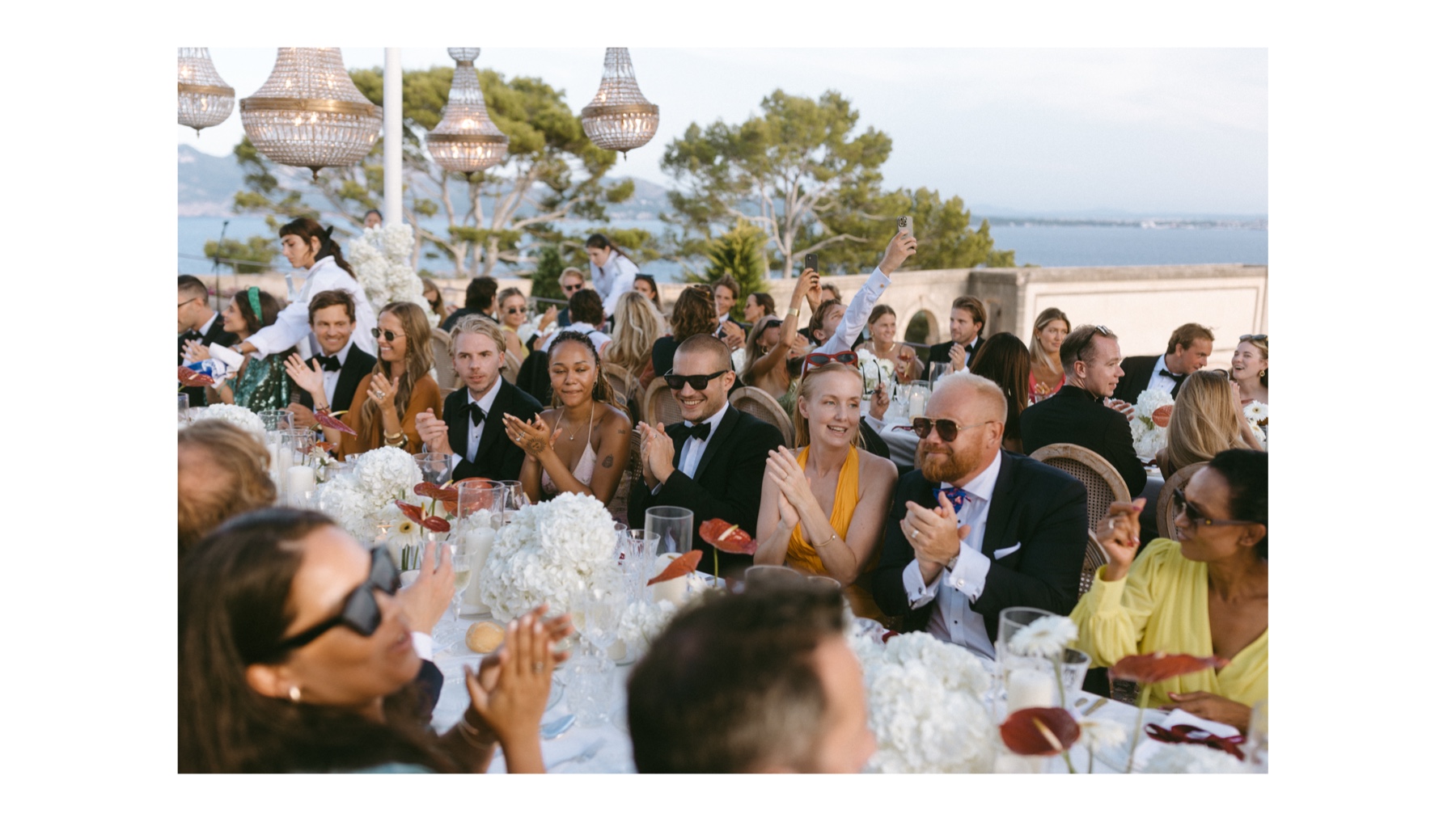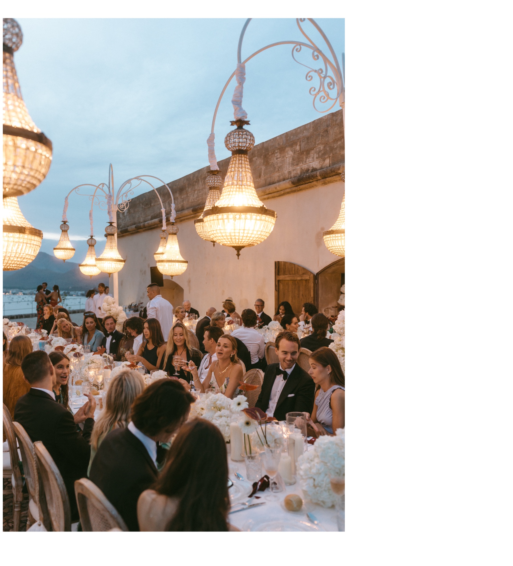 As the afternoon shifted into evening, the atmosphere changed gently. Golden light washed over the terraces, glasses clinked, conversations grew louder, laughter lingered longer. Dinner felt intimate despite the vastness of the surroundings – long tables, warm tones, shared stories.